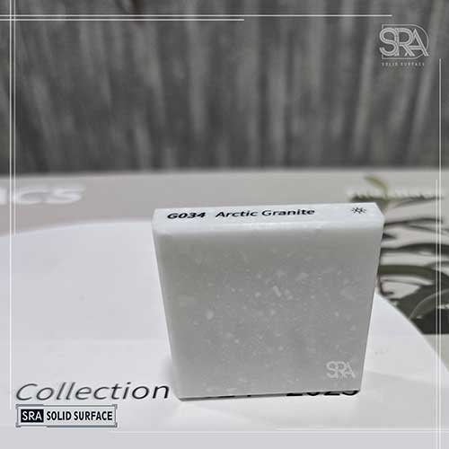 Arctic Granite G034 LX HIMACS from SRA Solid Surface is a premium solid surface crafted with a blend of acrylic resin and natural minerals. Featuring a soft white base with subtle gray tones, it offers seamless elegance, durability, stain resistance, and easy maintenance for modern interiors.