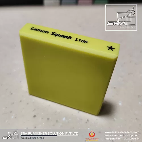 Lemon Squash S106 LX Himacs is a solid surface material that is perfect for adding a touch of brightness and freshness to any space. It is made of a blend of acrylic resin and natural minerals, which gives it a high level of strength, durability, and stain resistance. Lemon Squash S106 LX is also non-porous, which means that it is easy to clean and maintain.