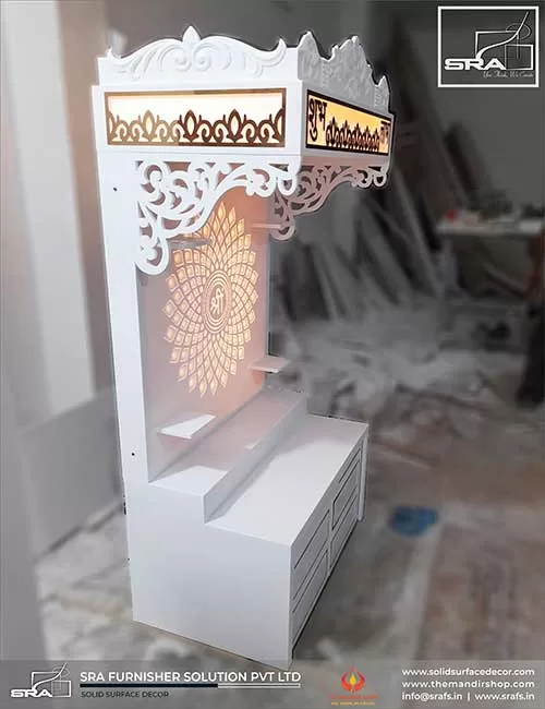 - QUALITY Durable and reliable, Acrylic solid surface Temple – SRA Furnisher Solution Pvt Ltd promises to deliver the best result. From simple Temple to complex, thermoformed design concepts, Corian Temple, Acrylic Solid Surface is the ultimate design material for any project/ Product.