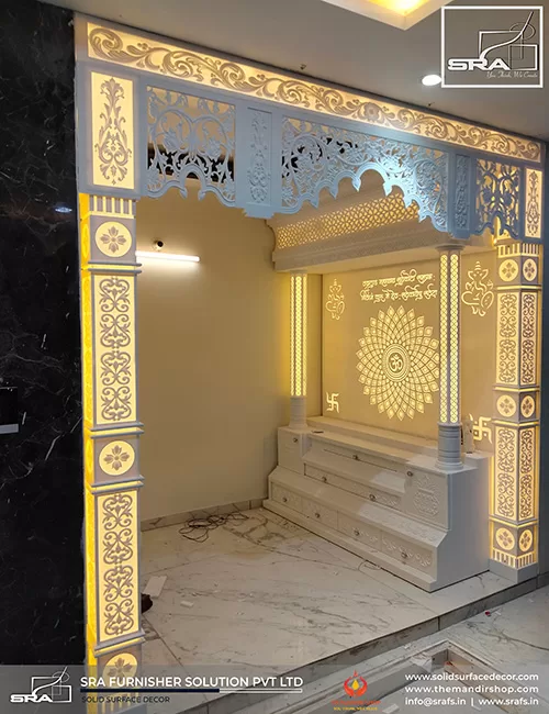 - QUALITY Durable and reliable, Acrylic solid surface Temple – SRA Furnisher Solution Pvt Ltd promises to deliver the best result. From simple Temple to complex, thermoformed design concepts, Corian Temple, Acrylic Solid Surface is the ultimate design material for any project/ Product.