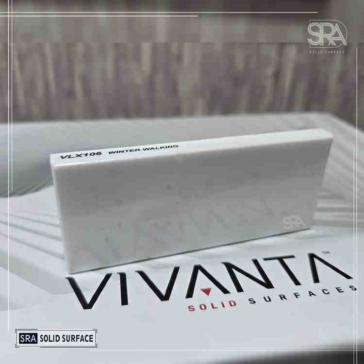 The VLX106 Winter Walking Vivanta Solid Surface offers a perfect blend of elegance, durability, and versatility, making it an excellent choice for a wide range of interior design applications where a clean, contemporary look is desired.