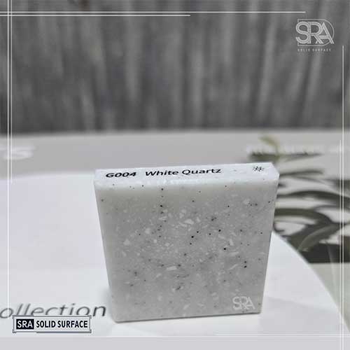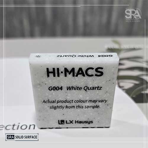 White Quartz G004 LX HIMACS Solid Surface by SRA Solid Surface is a premium solid surface material designed to bring sophistication and elegance to your interiors. Crafted using a perfect blend of acrylic resin and natural quartz, this surface offers exceptional strength, durability, and long-lasting performance.